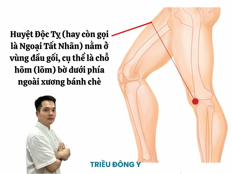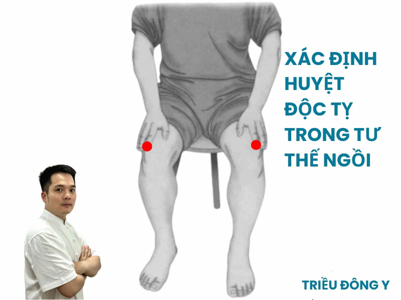 Việc xác định đúng vị trí huyệt Độc Tỵ là điều kiện tiên quyết để đạt được hiệu quả trị liệu. Khác với nhiều huyệt vị nằm trên khối cơ dày, Độc Tỵ nằm tại một “điểm giao thoa” giải phẫu nhạy cảm. Để tìm huyệt, người bệnh nên ngồi ở tư thế co đầu gối một góc khoảng 90 độ, huyệt sẽ nằm ở chỗ lõm dưới – ngoài xương bánh chè, ngay phía ngoài của gân cơ tứ đầu đùi.